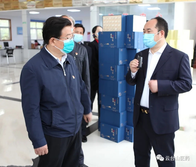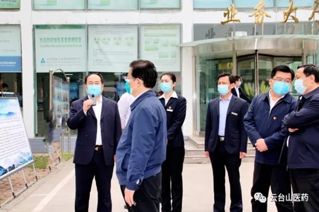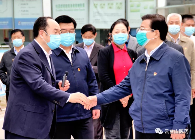 2020年4月17日上午,焦作市人民政府市长徐衣显带领五大班子领导及各县区主要领导莅临焦作市云台山医药公司指导工作。云台山医药公司董事长杨文成向徐市长详细介绍了云台山医药公司的发展现状及云台山医药物流园的发展规划。