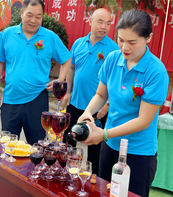 为了表示对家人们工作的肯定,董事长亲自向大家敬酒