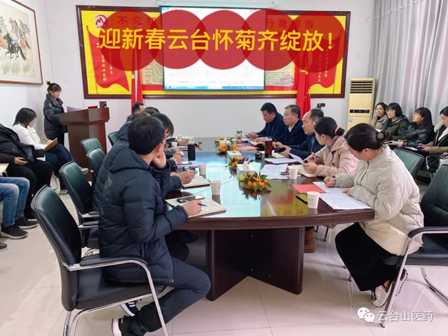 风雨兼程的2020正在悄然走远,距离2021还有将近40天的时间,时间在流转,云台山医药公司也在为感恩回馈新老客户而忙碌着,2020年12月26日,云台怀菊系列销售季活动工作会议在公司三楼小会议室召开,公司董事长杨文成、党支部书记马杰、副总经理郑宪锋、总经理助理葛云增、工会主席王三年以及公司销售代表参加了此次会议。会议上,董事长做出了重要指示,对云台怀菊系列项目的发展做出了详细的安排和部署,分析了当下的局势,希望大家抓住大好时机,在保证产品品质的前提下,向最后的目标任务冲刺。在董事长的鼓舞下,大家信心倍增,表示力争完成年底云台怀菊销售任务。