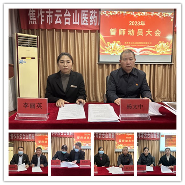 今天,公司组织召开2023年度工作誓师大会,会议的主要内容是:确定本年度经营思想,下达年度经营指标,签订业务部门《目标责任书》,宣布年度奖项设定。