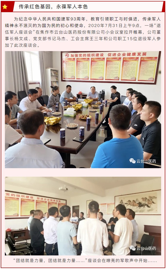 此次的“八一建军节”专题座谈会圆满结束,通过这次座谈会,进一步增强了退役军人热爱国家、热爱人民的人民子弟兵情怀。鼓励退役军人积极为公司发展建言献策,为公司再立新功。活动结束后,退役军人们纷纷表示,将以此次活动为契机,积极投身到工作中去,为公司的发展再献一份力量。